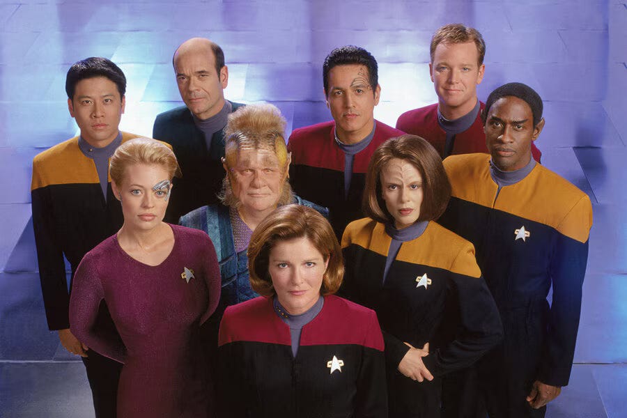 In short, Voyager’s crew was conceptually bankrupt. The writers had cobbled them together from pre-existing archetypes without much thought. Though the cast were perfectly capable actors, the result was less than the sum of its parts— there were no standout figures to capture the imagination or inspire audience loyalty. No Data, Spock, or Odo.
